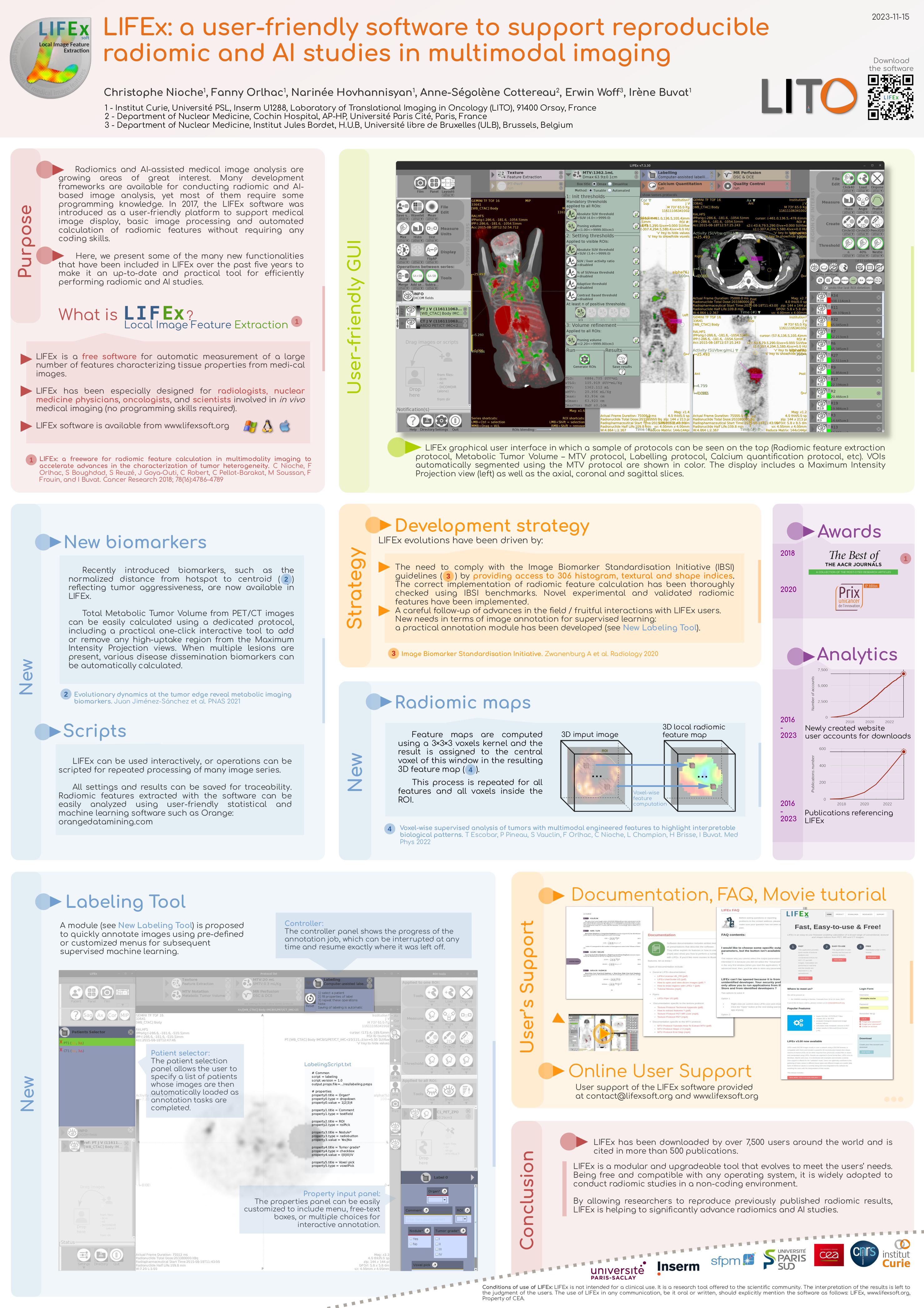 Le logiciel compte à ce jour plus de 8800 utilisateurs dans le monde. Sa version initiale a été décrite dans un article de Cancer Research en 2018. Toutes les informations relatives au projet LIFEx (téléchargement, dernières versions, tutoriels, etc) sont accessibles sur le site dédié.